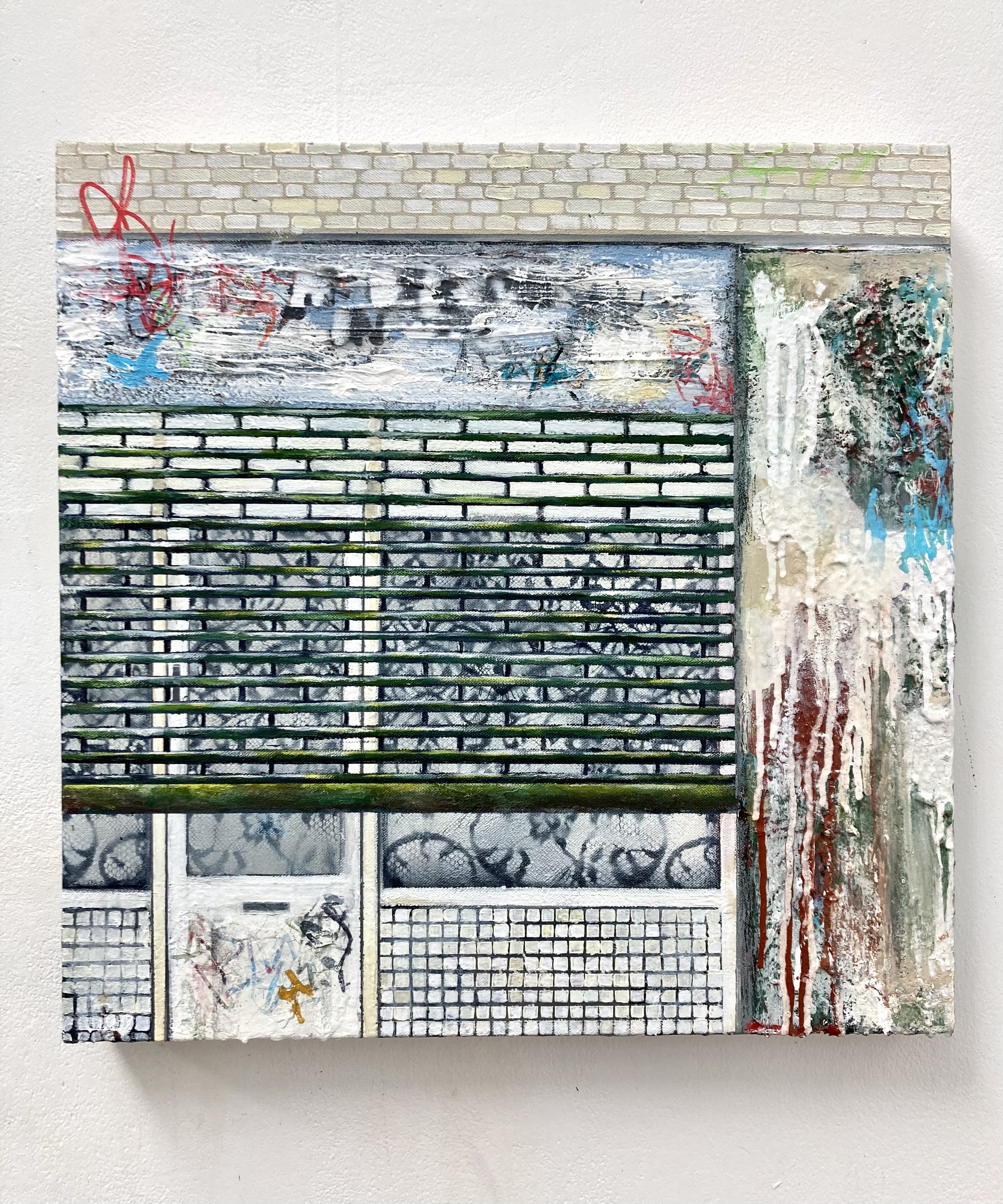 Acrylic, spray paint, pastels on canvas
